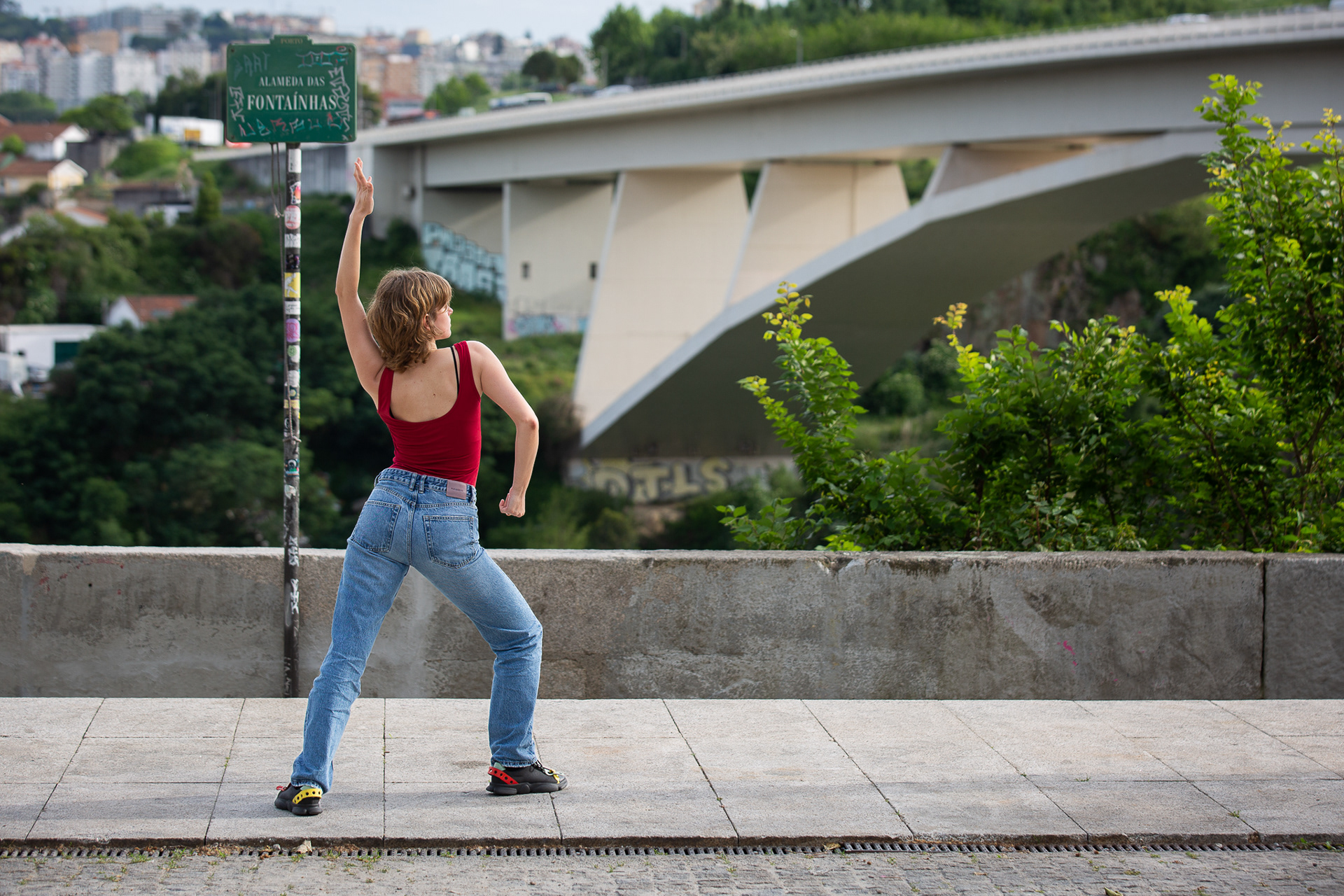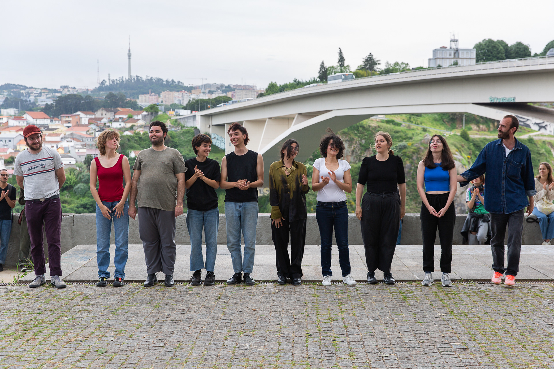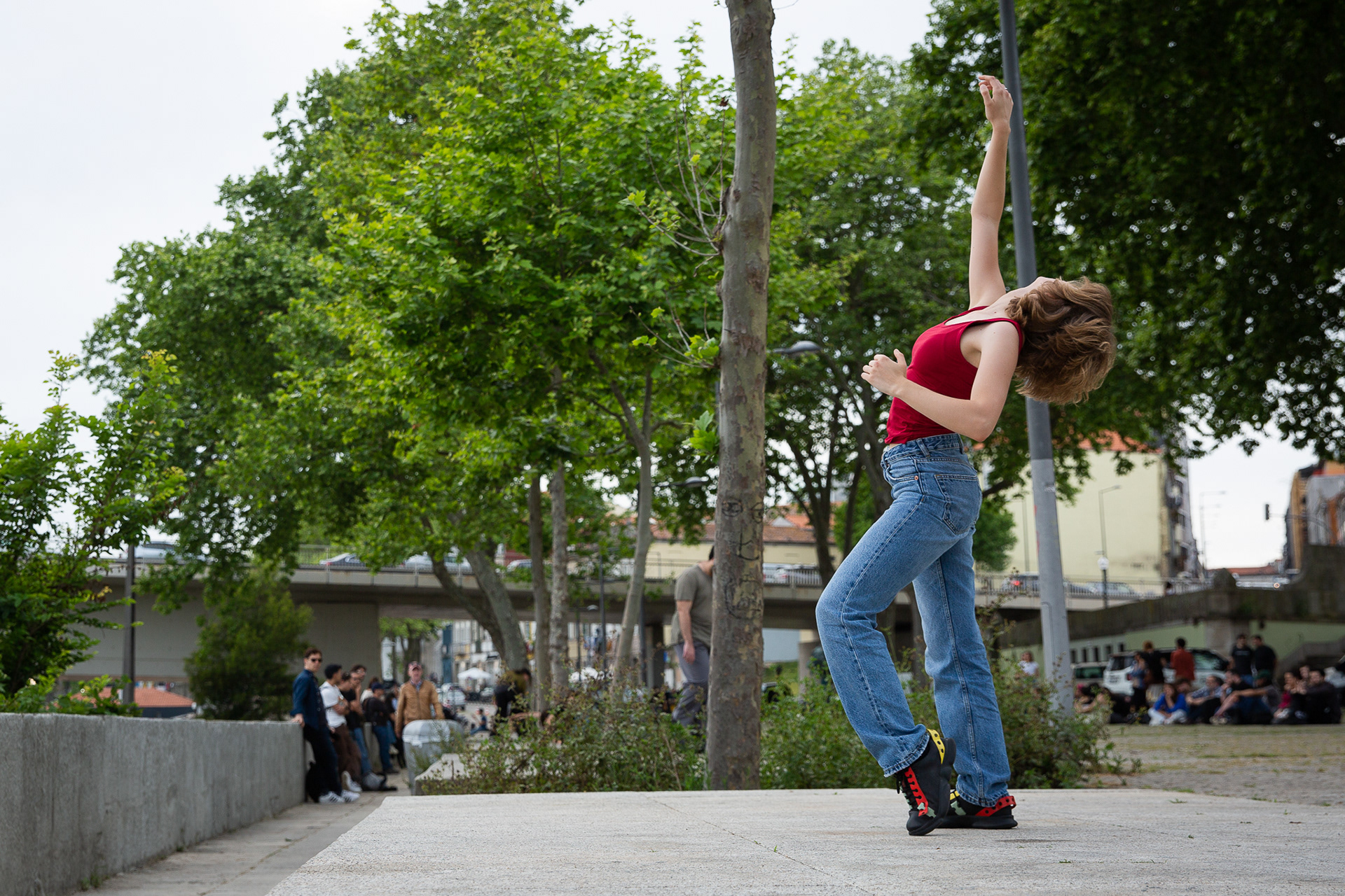 A dialogue between guest artists from the balleteatro and FBAUP students. 'Crossing Spaces / Living Bodies II' is a multidisciplinary and site-specific project motivated by sharing, proximity and creation by several hands, in a desire to experience today, seeking to inhabit public space collectively. This creation is generated collaboratively, specifically for Corpo + Cidade, in partnership with DDD – Festival Dias da Dança. Sound intervention by Francisco Pedro Oliveira. Photographies by Pedro Figueiredo.