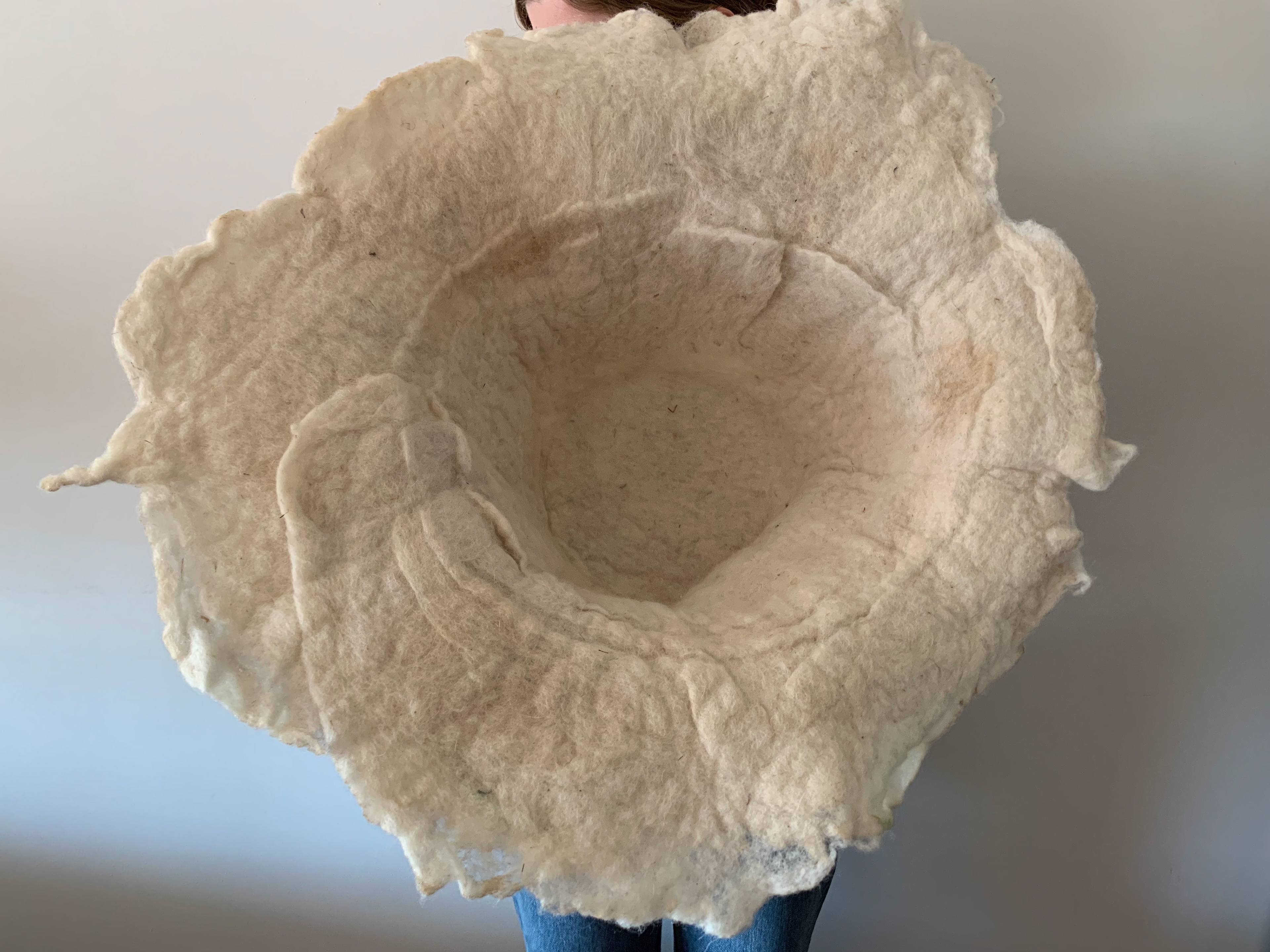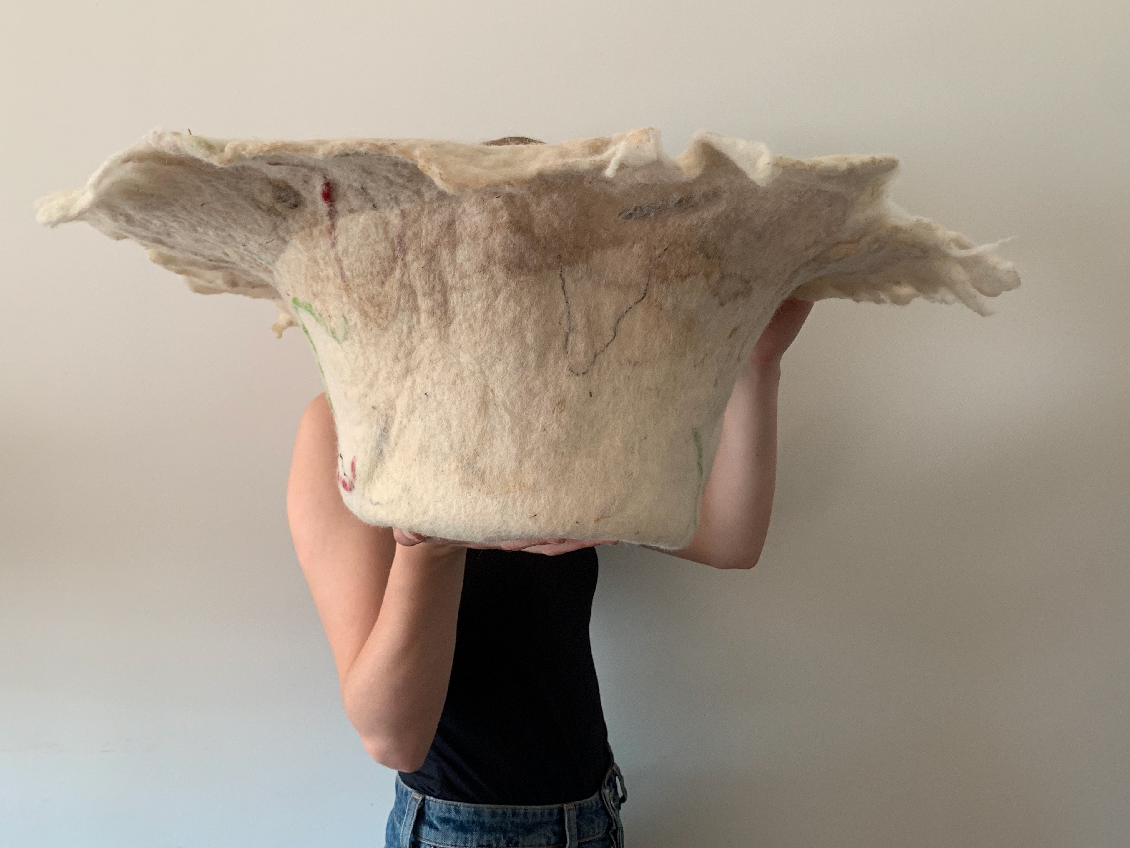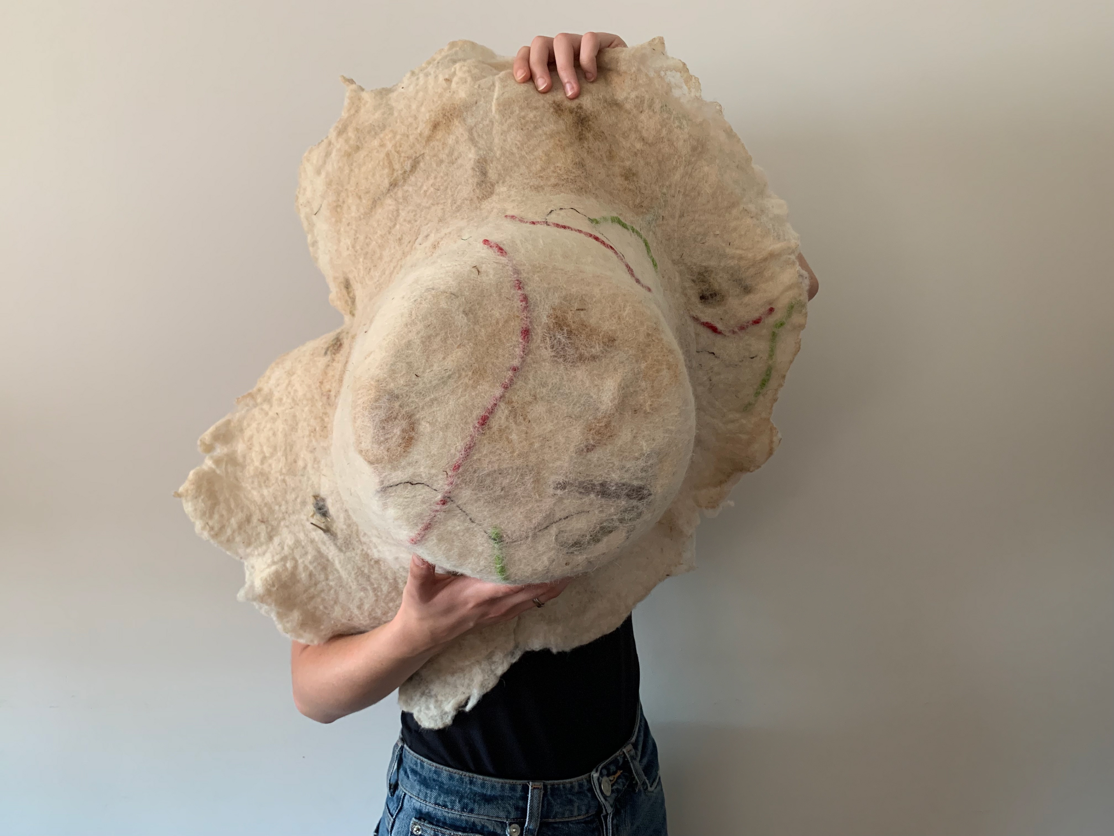 Textile work using wool, soap, dried flowers and plants.